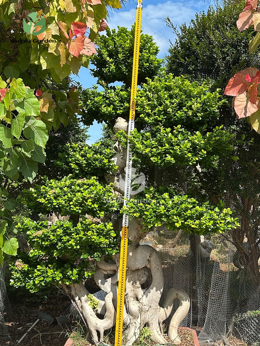 The 2.8m Map-Shape Strange Root Banyan Tree showcases complex, map-like aerial rootsintertwined with a layered canopy. Professionally shaped over several years, this Thai Ficus Microcarpa is ideal for creating high-end garden art and transforming luxury villas, resorts, and public landscapes into breathtaking spaces.